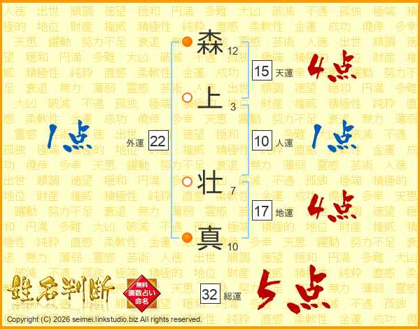 森上壮真さんの総運は32画の5点!