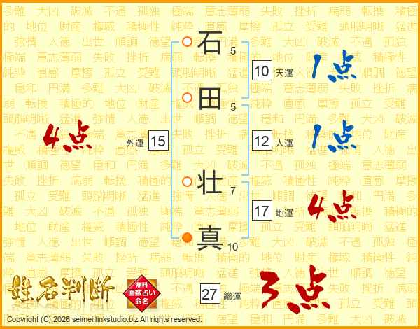 石(5画)田(5画) 壮(7画)真(10画)