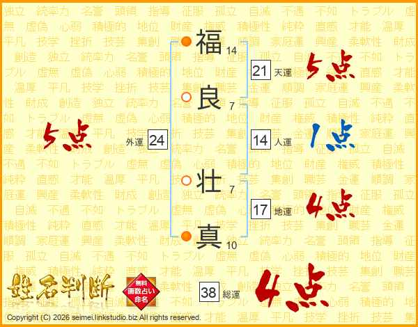 福良壮真さんの総運は38画の4点!