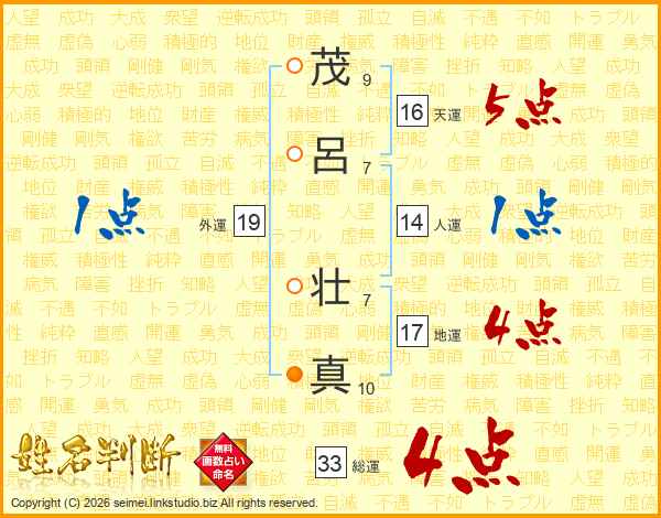 茂(9画)呂(7画) 壮(7画)真(10画)