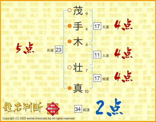 茂手木壮真さんの天運は17画の4点!