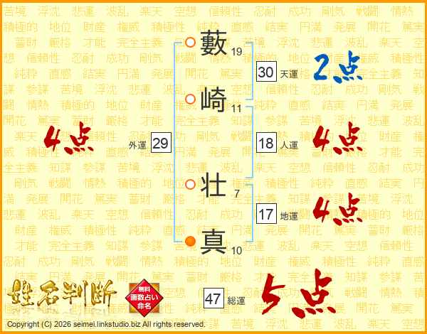 藪崎壮真さんの総運は47画の5点!