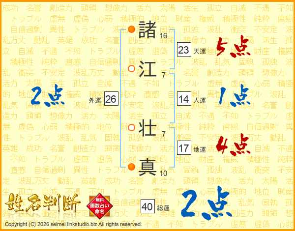 諸江壮真さんの天運は23画の5点!