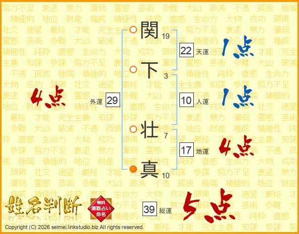 関下壮真さんの総運は39画の5点!