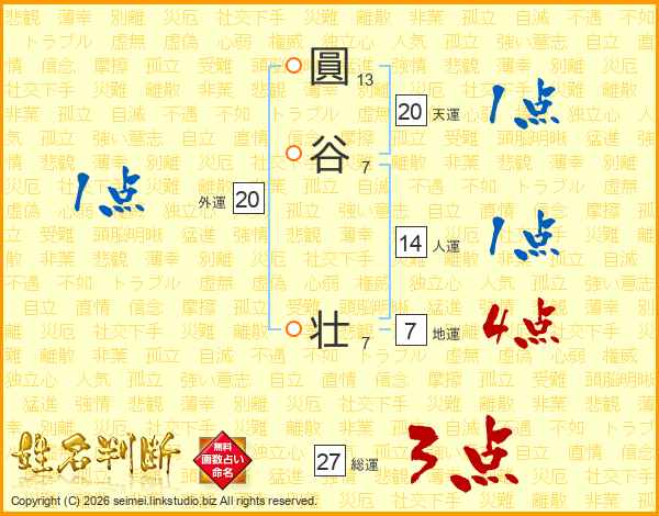 圓谷壮さんの総運は27画の3点!