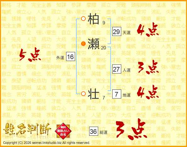 柏瀬壮さんの総運は36画の3点!