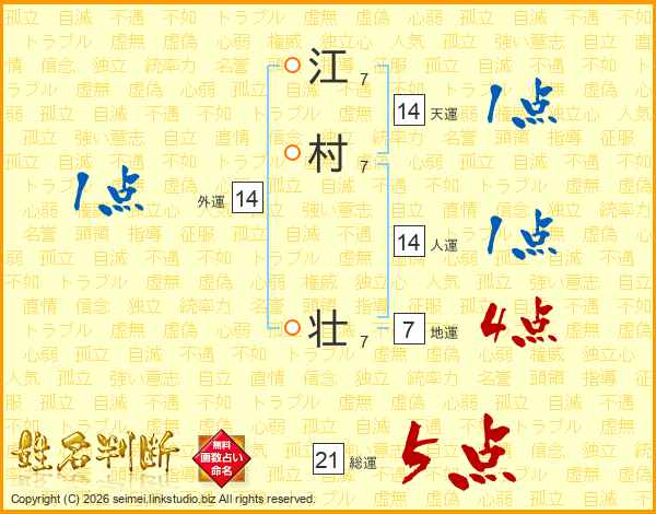 江村壮さんの総運は21画の5点!