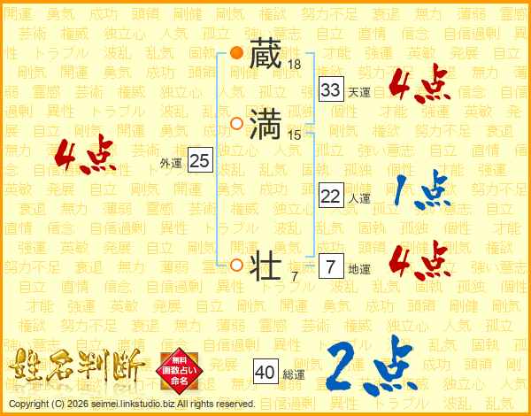 蔵満壮さんの人運は22画の1点!