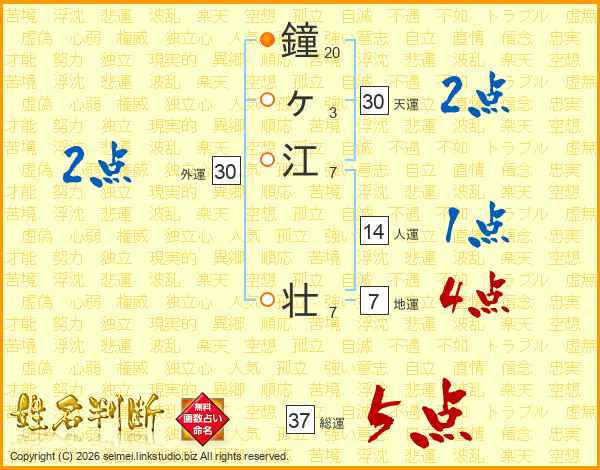 鐘(20画)ヶ(3画)江(7画) 壮(7画)