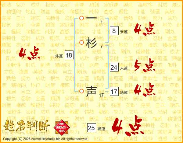 一杉声さんの総運は25画の4点