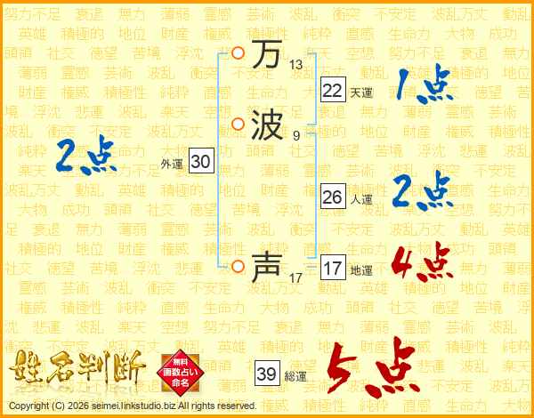 万波声さんの総運は39画の5点