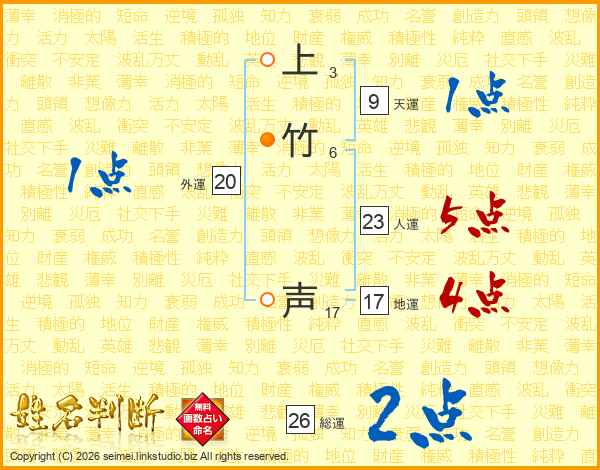 上竹声さんの総運は26画の2点!