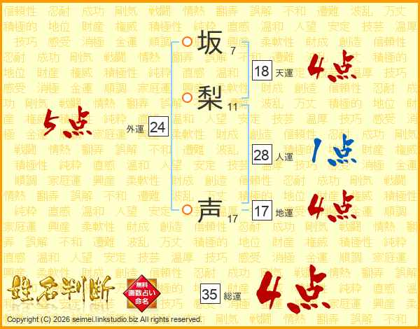 坂梨声さんの総運は35画の4点!