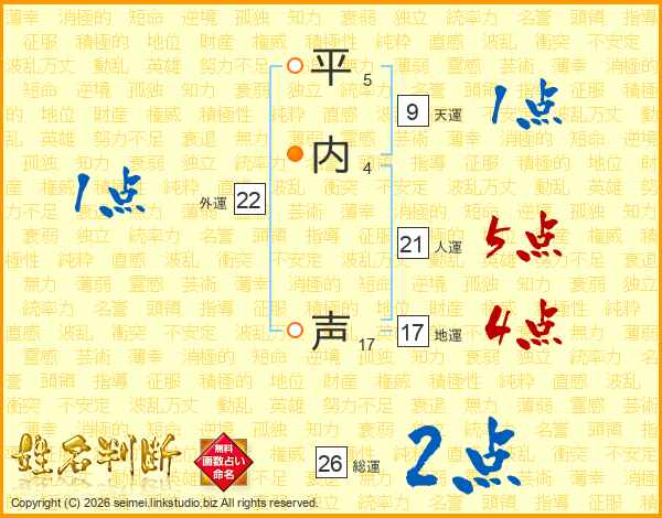 平内声さんの総運は26画の2点!