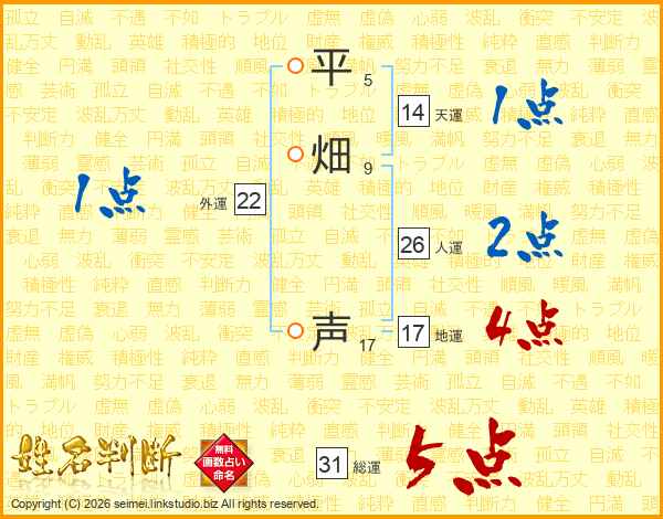 平畑声さんの総運は31画の5点!