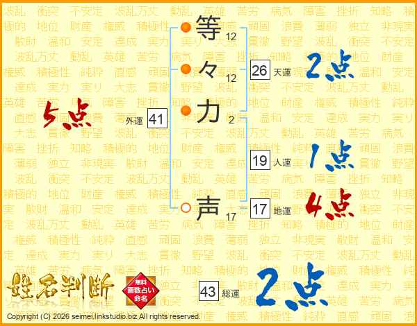 等々力声さんの天運は26画の2点!