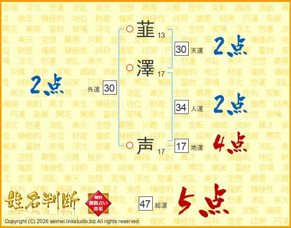 韮澤声さんの総運は47画の5点!