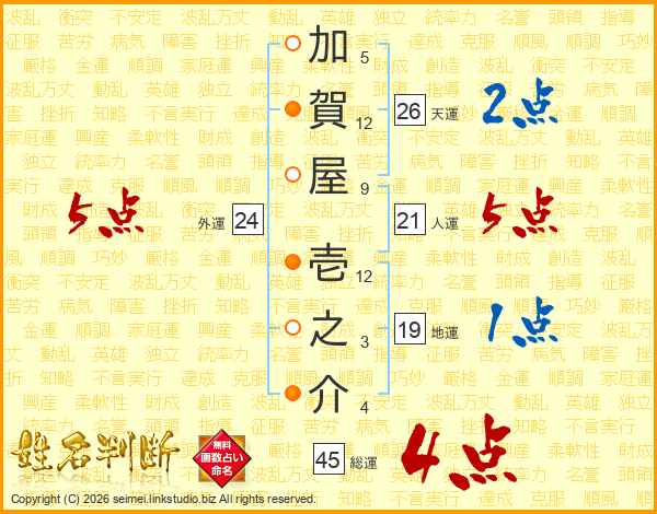 加賀屋壱之介さんの総運は45画の4点!