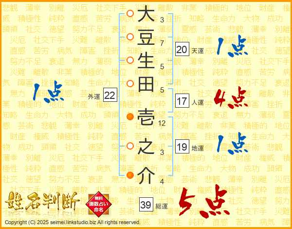 大(3画)豆(7画)生(5画)田(5画) 壱(12画)之(3画)介(4画)