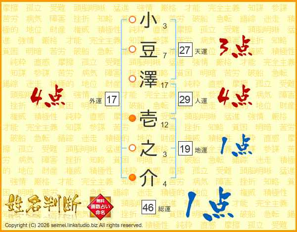 小豆澤壱之介さんの外運は17画の4点!
