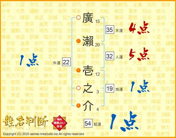 廣(15画)瀨(20画) 壱(12画)之(3画)介(4画)