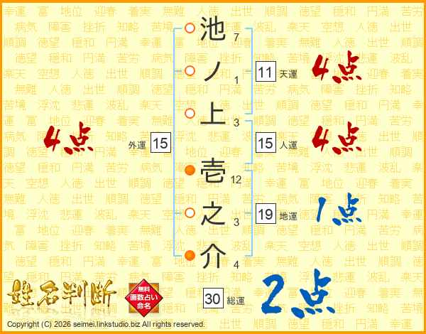 池ノ上壱之介さんの天運は11画の4点!