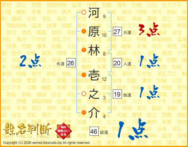 河原林壱之介さんの総運は46画の1点!
