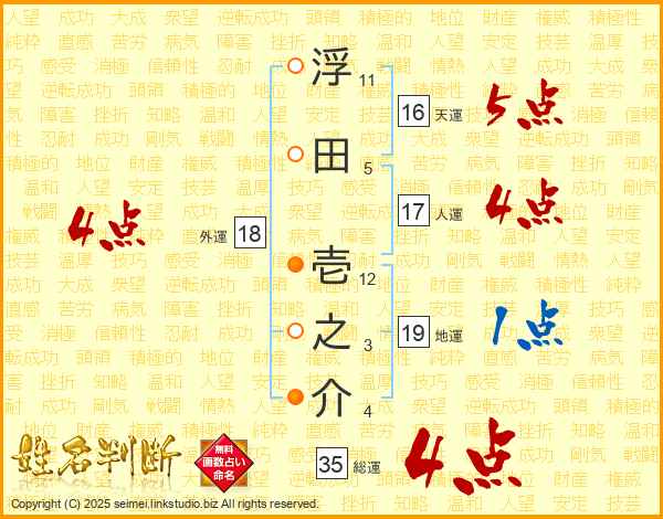 浮田壱之介さんの人運は17画の4点!