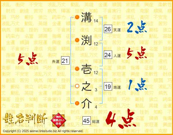 溝(14画)渕(12画) 壱(12画)之(3画)介(4画)