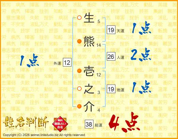 生熊壱之介さんの総運は38画の4点!
