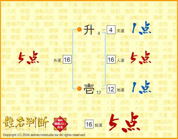 升壱さんの総運は16画の5点!