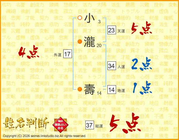 小瀧壽さんの総運は37画の5点