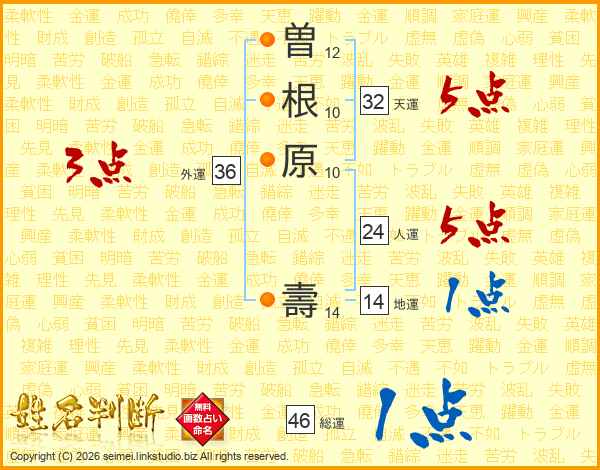 曽根原壽さんの地運は14画の1点!