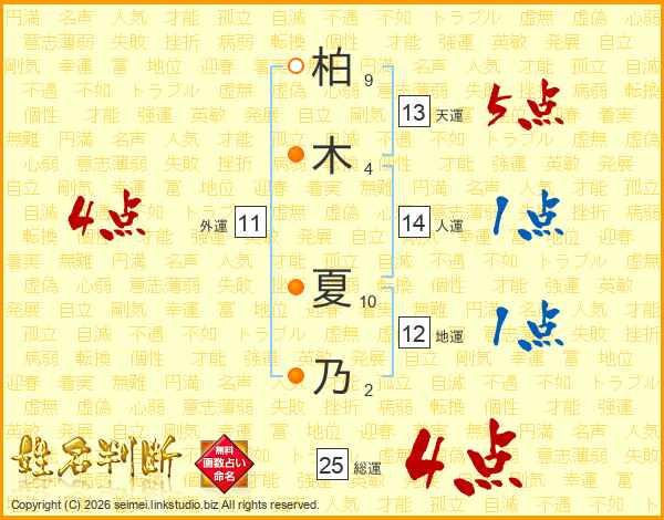 柏(9画)木(4画) 夏(10画)乃(2画)