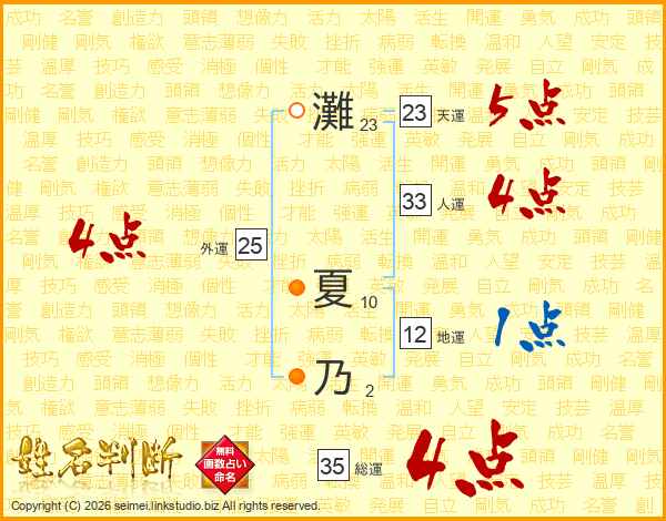 灘夏乃さんの総運は35画の4点!
