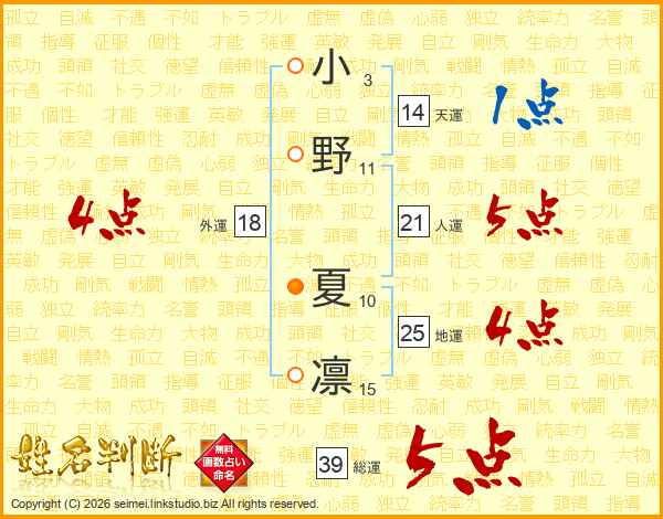 小野夏凛さんの総運は39画の5点!