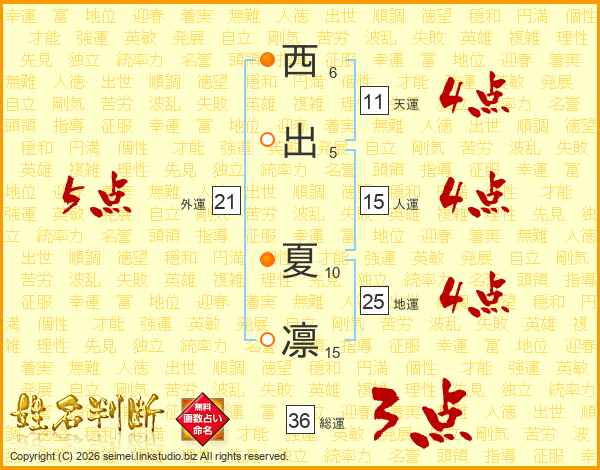 西出夏凛さんの天運は11画の4点!