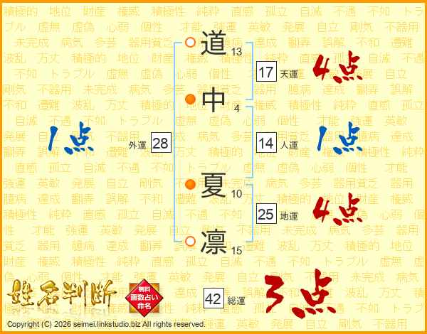 道中夏凛さんの天運は17画の4点!