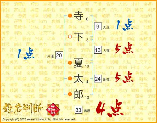 寺下夏太郎さんの総運は33画の4点!