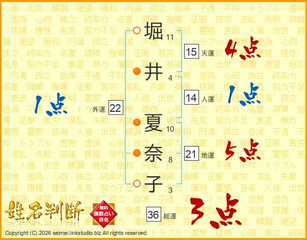 堀井夏奈子さんの総運は36画の3点!