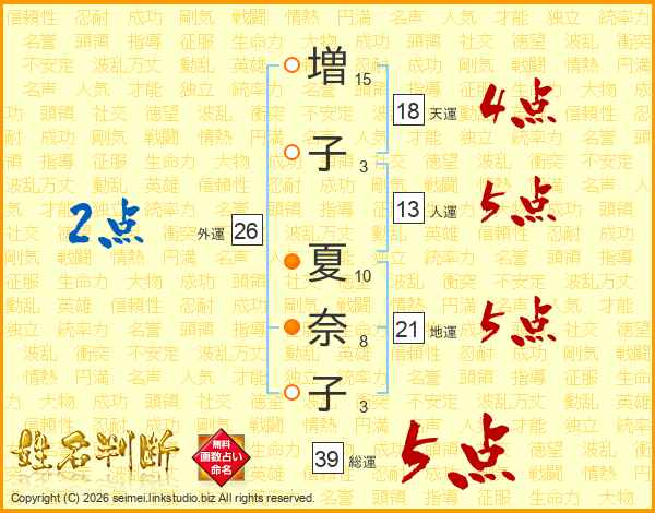 増子夏奈子さんの総運は39画の5点!