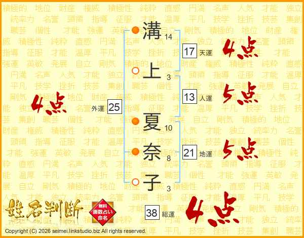 溝上夏奈子さんの総運は38画の4点!