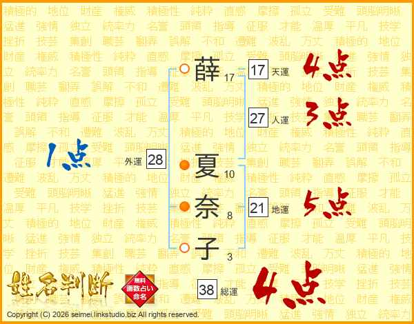薛夏奈子さんの総運は38画の4点!