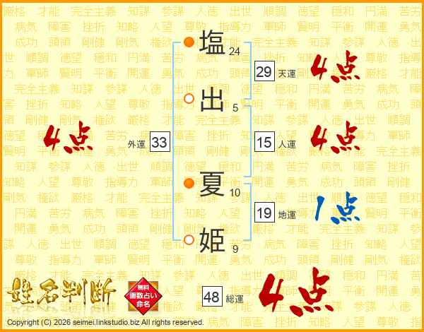 塩出夏姫さんの外運は33画の4点!