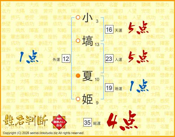 小(3画)塙(13画) 夏(10画)姫(9画)