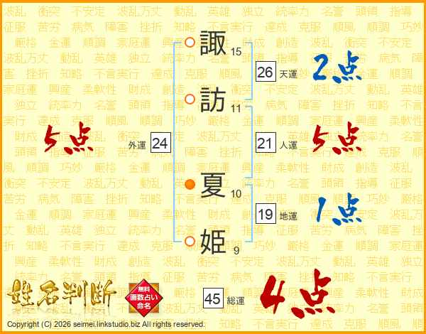諏訪夏姫さんの総運は45画の4点!