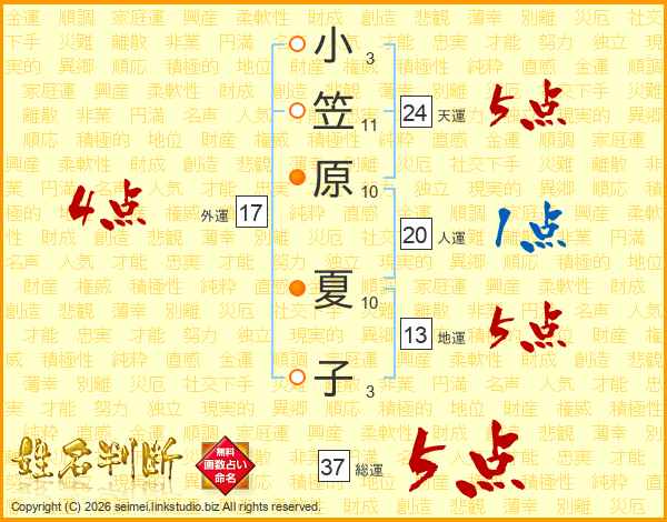 小笠原夏子さんの総運は37画の5点!
