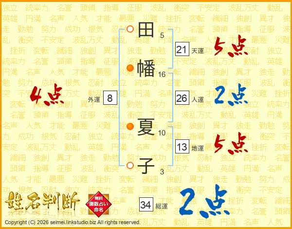 田幡夏子さんの人運は26画の2点!