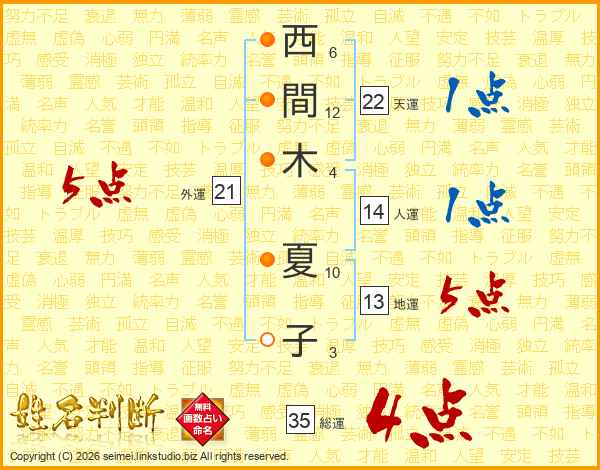 西間木夏子さんの総運は35画の4点!