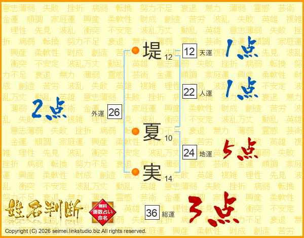 堤(12画) 夏(10画)実(14画)